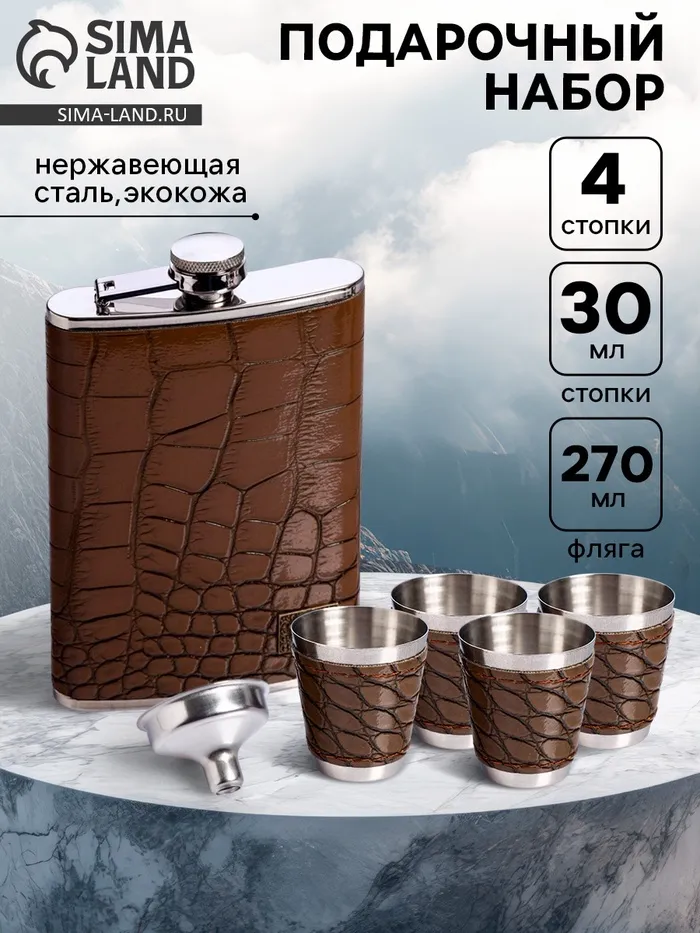 Подарочный набор «Орёл»: фляжка 270 мл, 4 рюмки, воронка — Характеристики