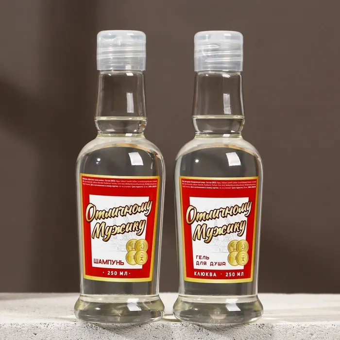 Подарочный набор «Отличному мужику», гель для душа и шампунь для волос водка, 2×250 мл, Чистое счастье — Характеристики