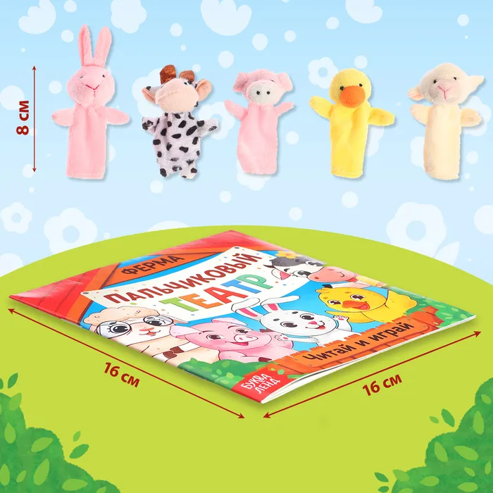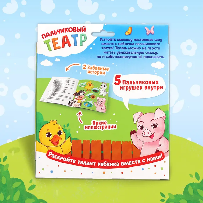 Подарочный набор «Пальчиковый театр. Ферма», сказка, 5 игрушек, 3+ — Характеристики