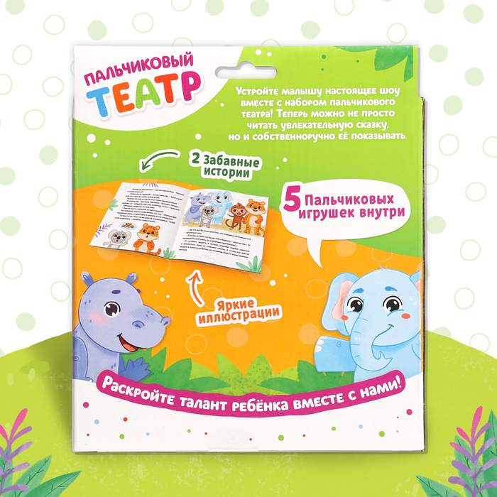 Подарочный набор «Пальчиковый театр. Зоопарк», сказка, 5 игрушек, 3+ — Характеристики
