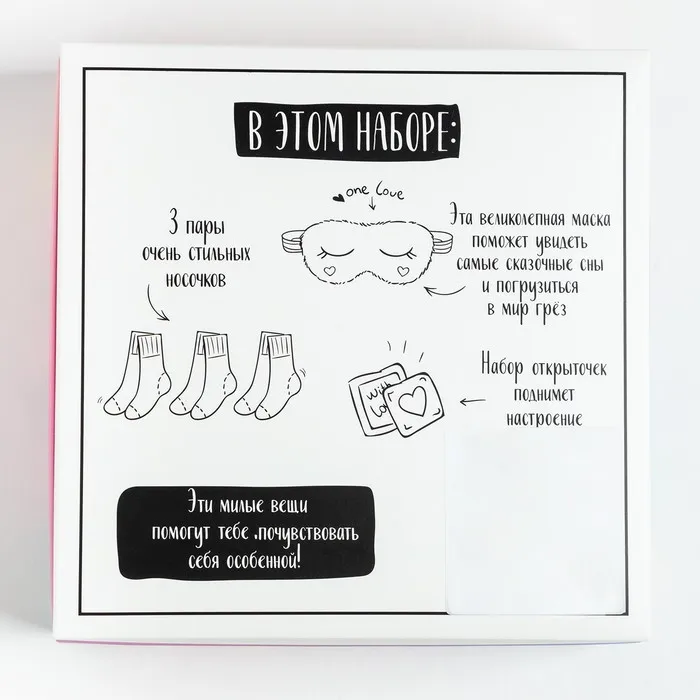 Подарочный набор Party, маска для сна, носки женские, 3 пары — Характеристики