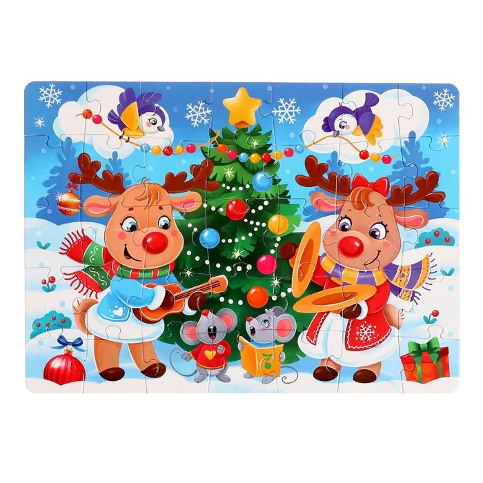 Набор пазлов «Праздник у оленят» — то, что нужно для полезного и интересного досуга! Такой подарок поможет ребёнку скрасить ожидание Нового года, а также потренировать мелкую моторику, внимательность, логическое мышление и память.