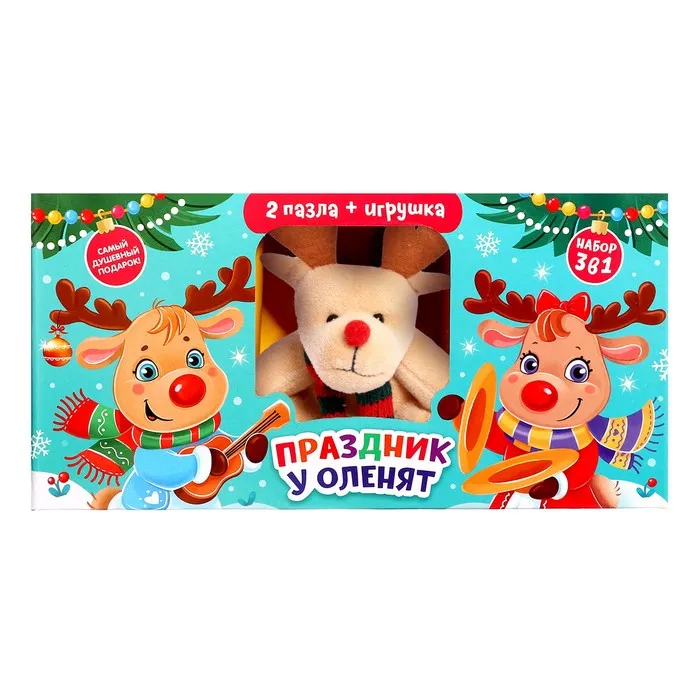 Подарочный набор пазлов с игрушкой 3 в 1 «Праздник у оленят» — Характеристики