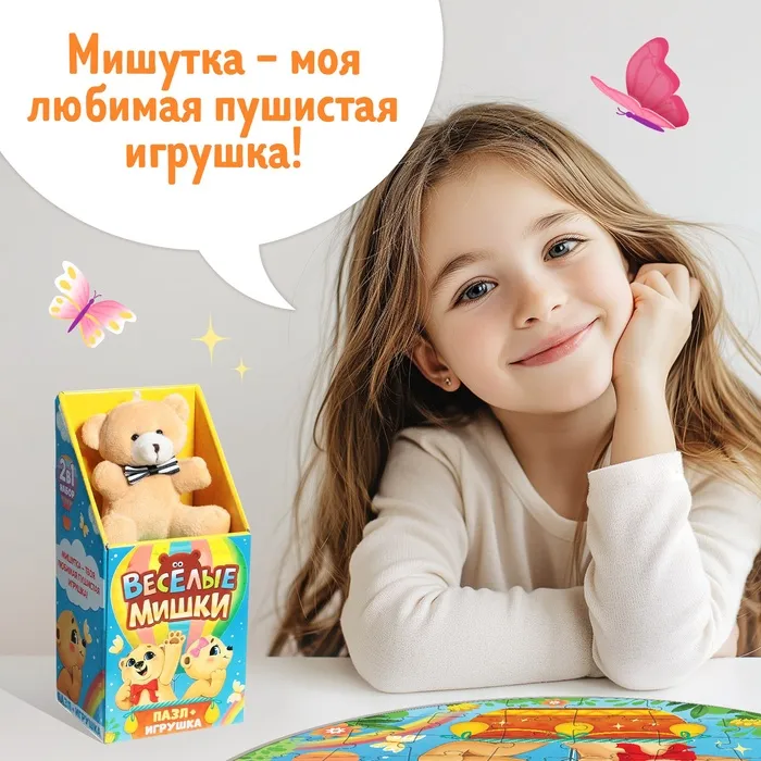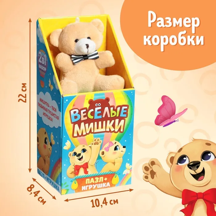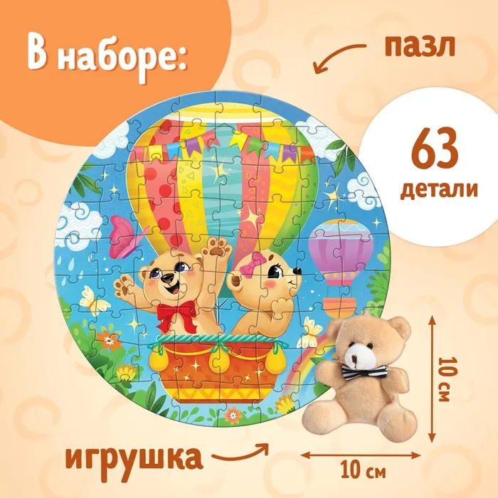 Подарочный набор пазлов с игрушкой «Весёлые мишки», 63 детали — Характеристики
