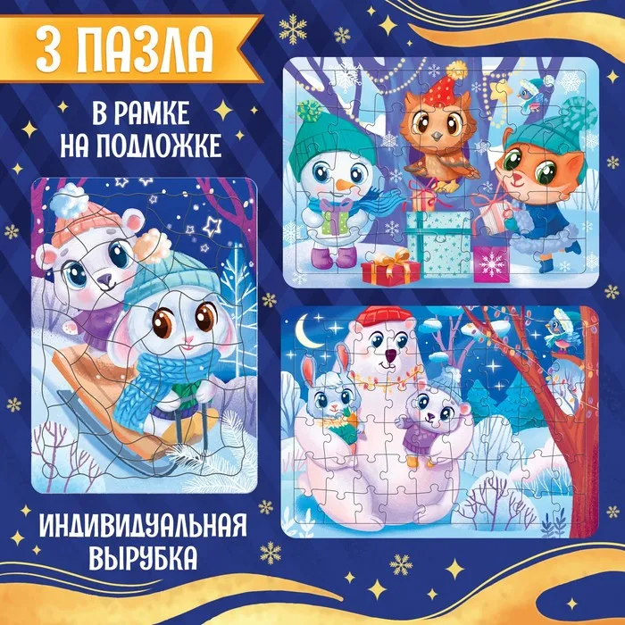 Подарочный набор пазлов в рамке «Новогодние радости», 35, 42, 54 детали — Характеристики