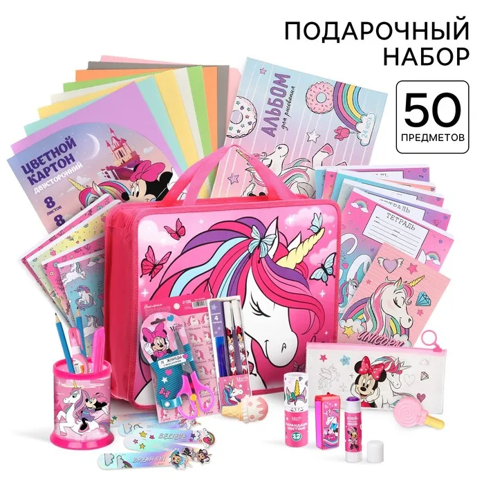 Подарочный набор первоклассника в папке, 50 предметов, «Минни и Единорог» — Характеристики