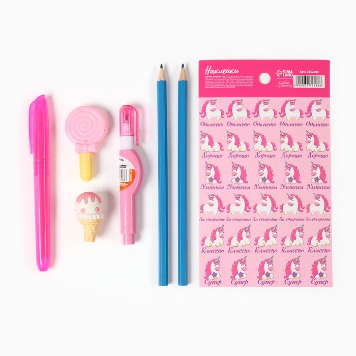 Подарочный набор первоклассника в папке, 50 предметов, «Минни и Единорог» — Характеристики