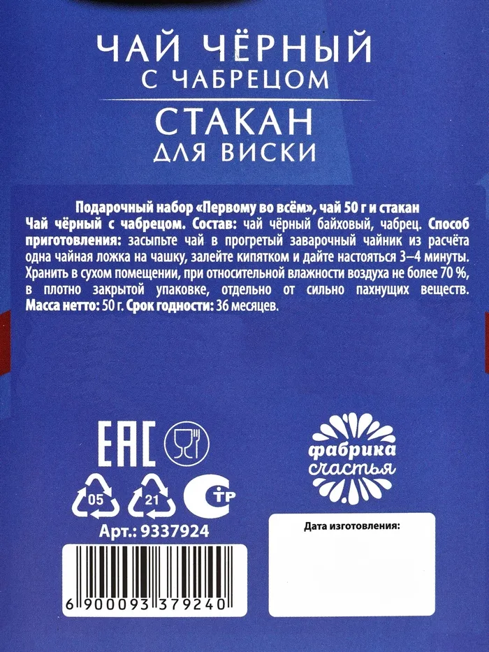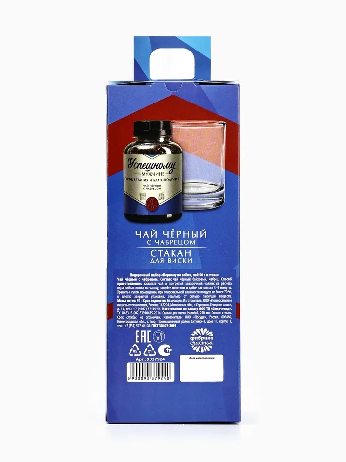 Подарочный набор «Первому во всём», чай чёрный с сушёными травами 50 г., стакан 250 мл. (18+) — Характеристики