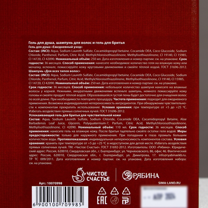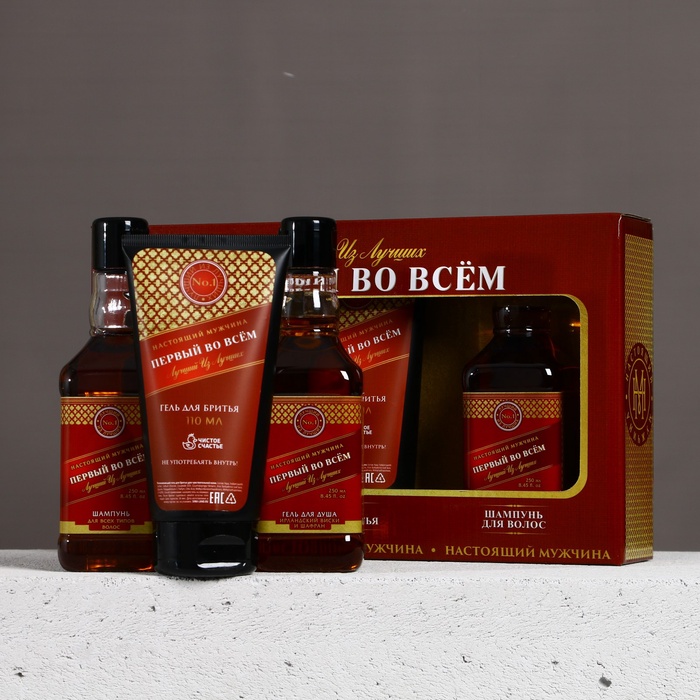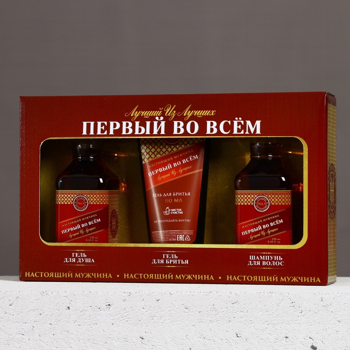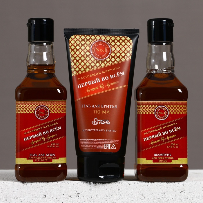Подарочный набор «Первый во всем», гель для бритья 110 мл, гель для душа и шампунь для волос виски, 2×250 мл, Чистое счастье — Характеристики