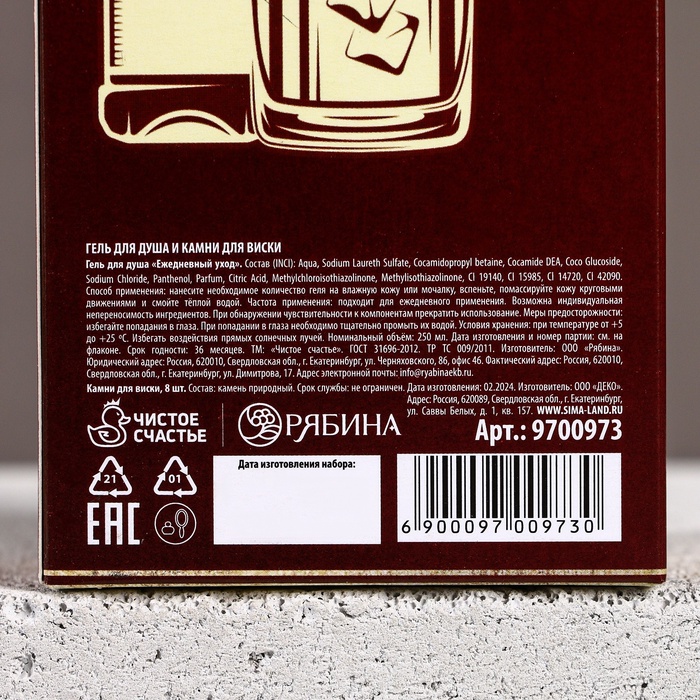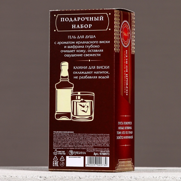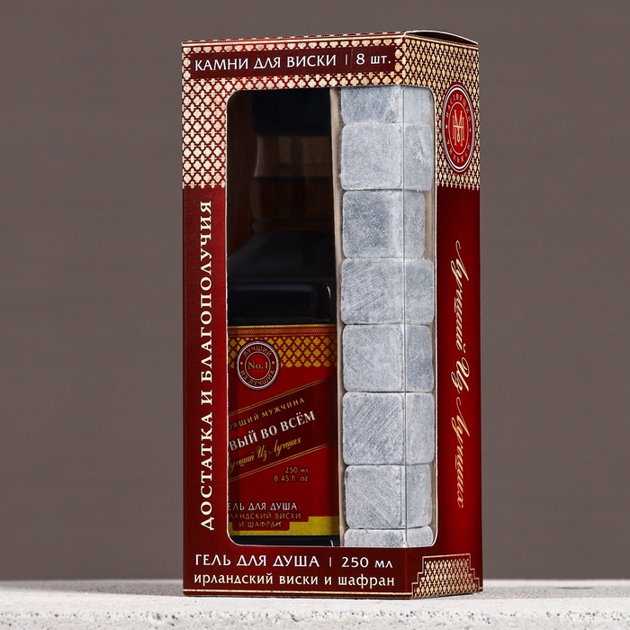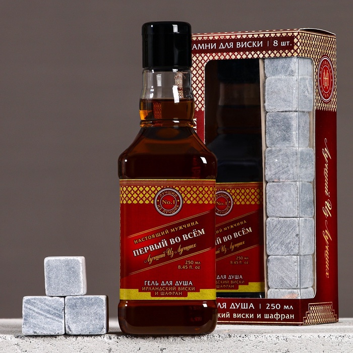 Подарочный набор «Первый во всём», гель для душа виски 250 мл и камни для виски, Чистое счастье — Характеристики