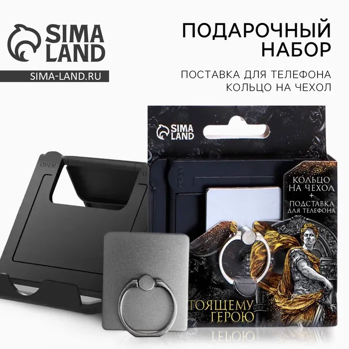 Подарочный набор, подставка для телефона и кольцо на чехол «Настоящему герою» — Характеристики