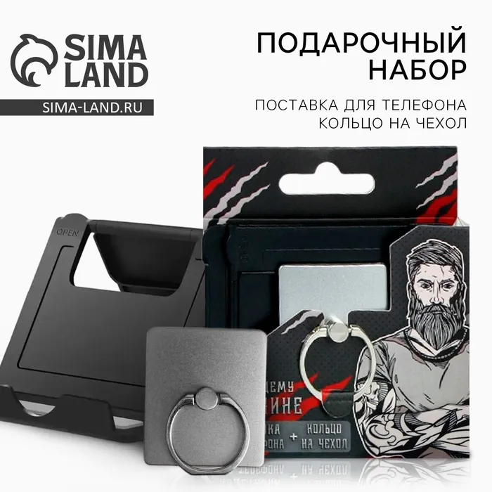 Подарочный набор, подставка для телефона и кольцо на чехол «Настоящему мужчине» — Характеристики