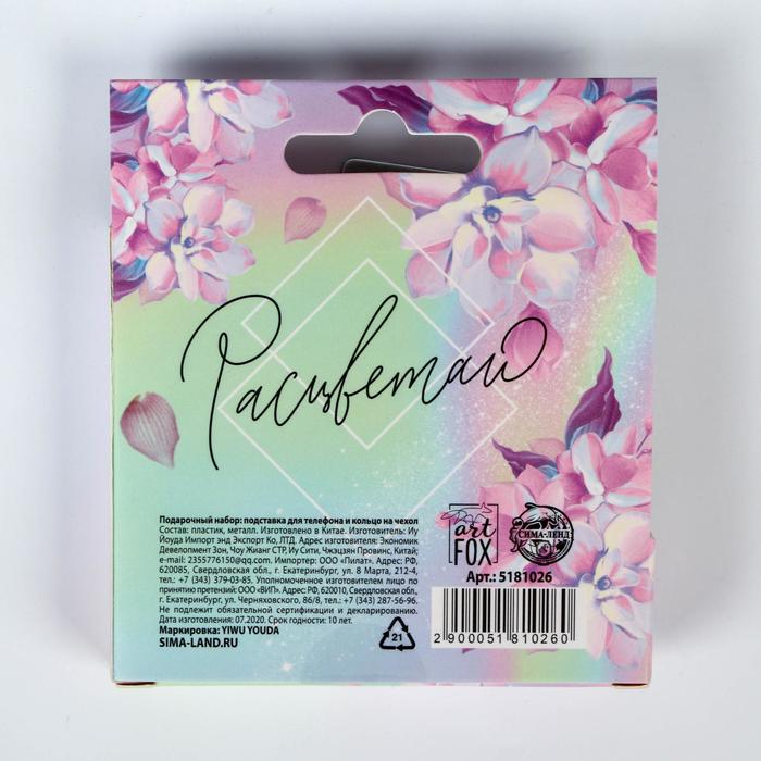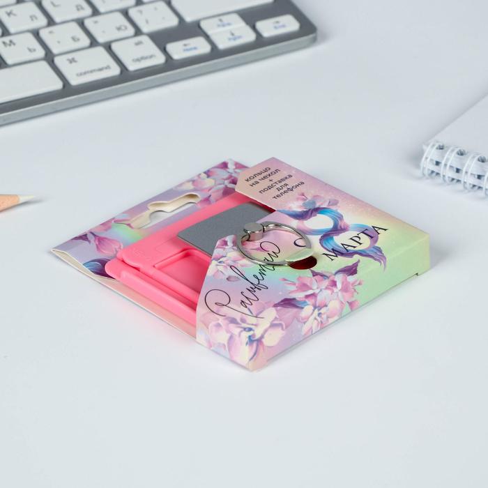 Подарочный набор, подставка для телефона и кольцо на чехол «Расцветаю. 8 марта» — Характеристики