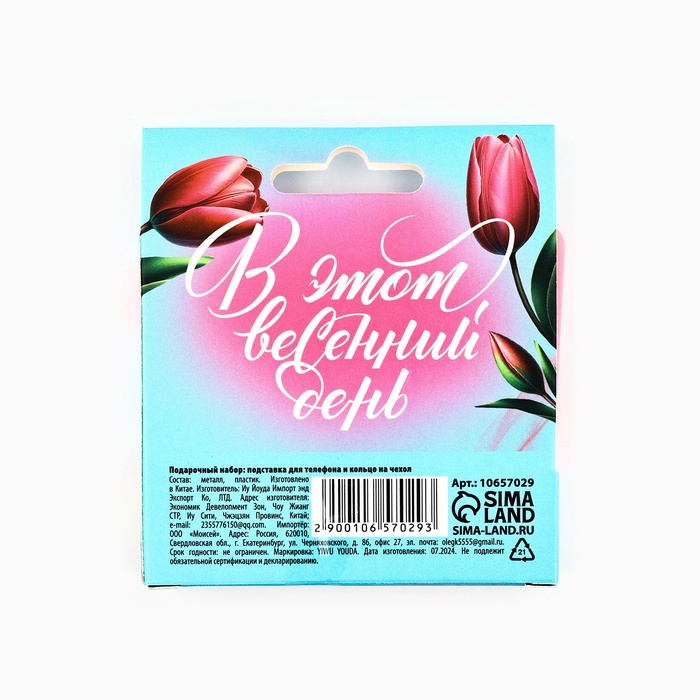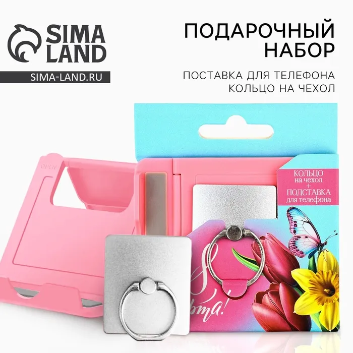 Подарочный набор, подставка для телефона и кольцо на чехол «С 8 марта» — Характеристики