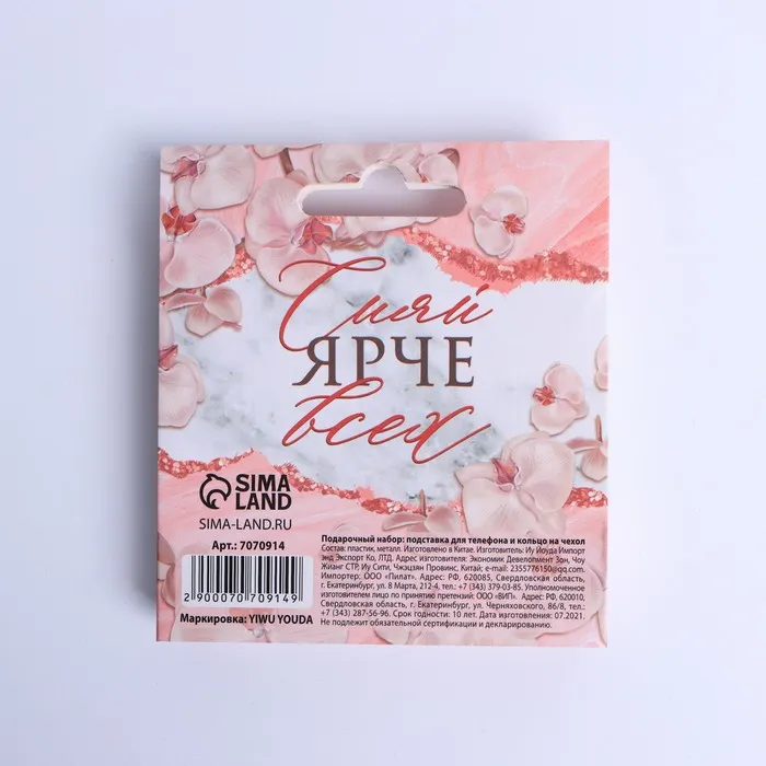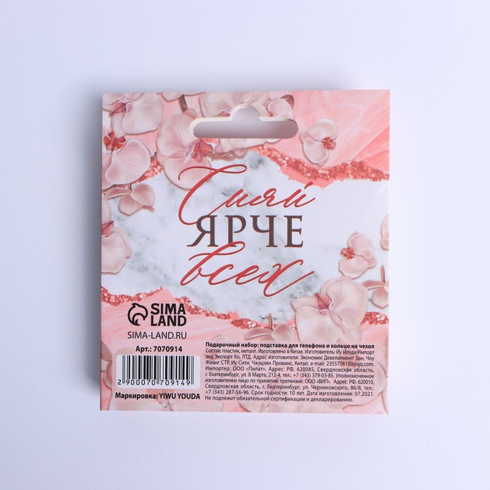 Подарочный набор, подставка для телефона и кольцо на чехол «Самой нежной» — Характеристики