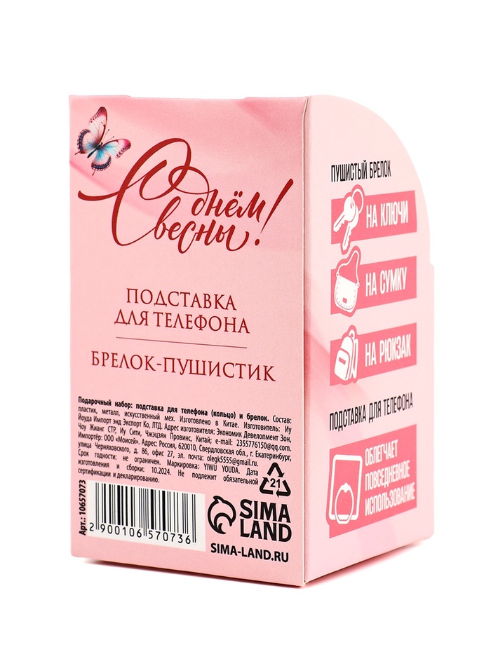 Подарочный набор, подставка для телефона-кольцо и брелок «8 марта: Ты прекрасна» — Характеристики