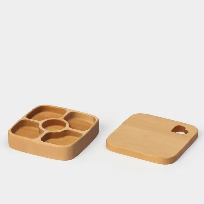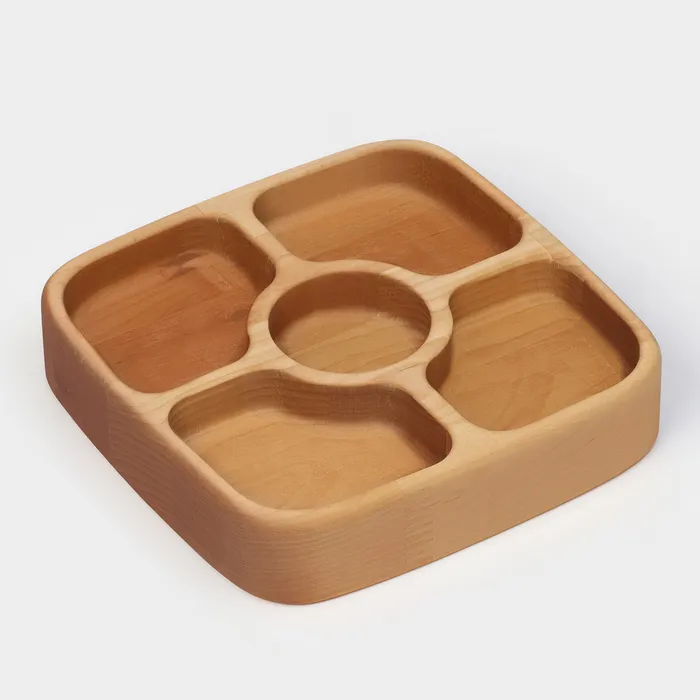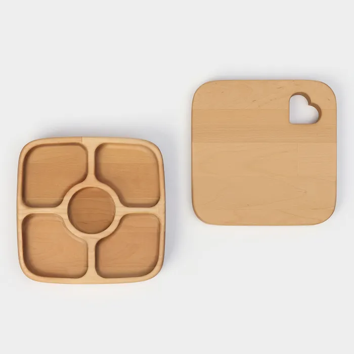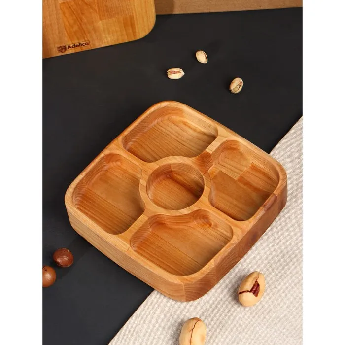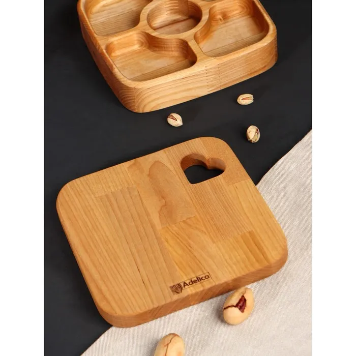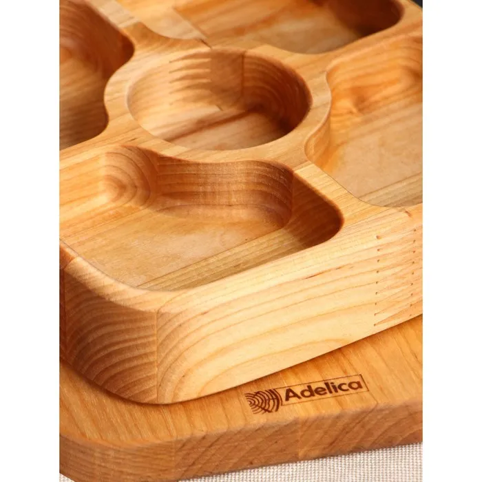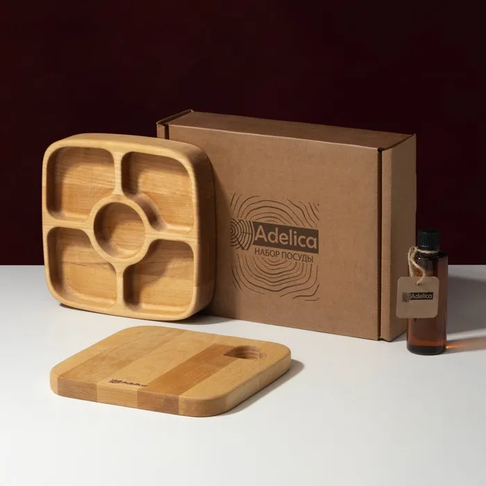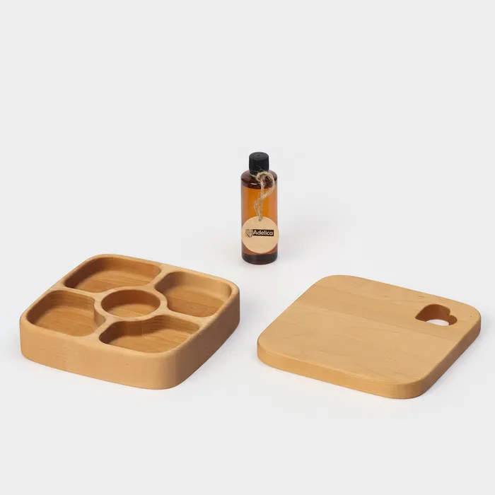 Подарочный набор посуды Adelica, доска сервировочная, менажница деревянная 5 секций, масло для пропитки в подарок 100 мл, берёза — Характеристики