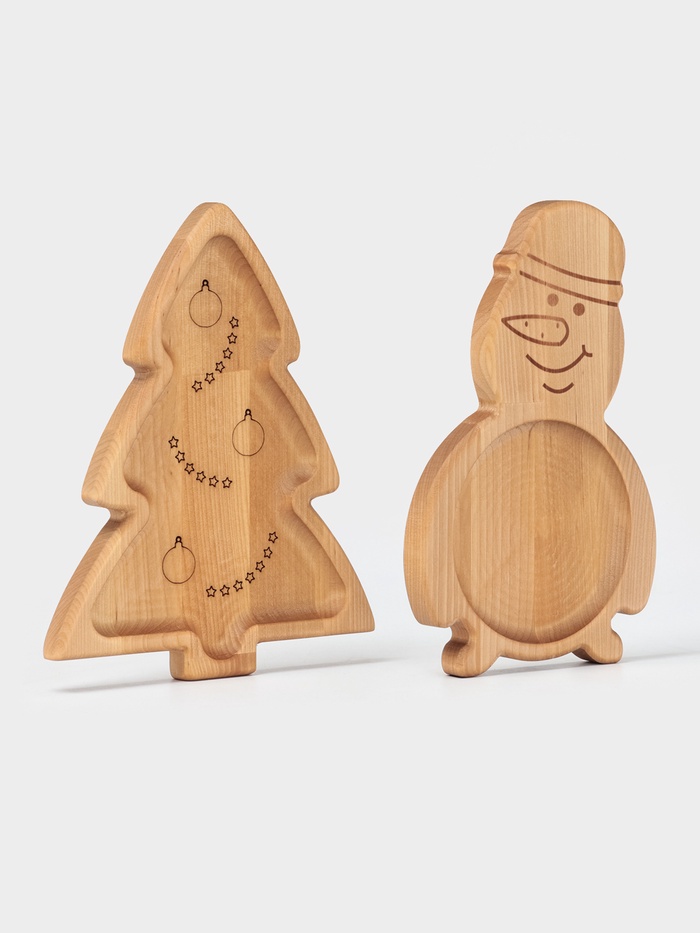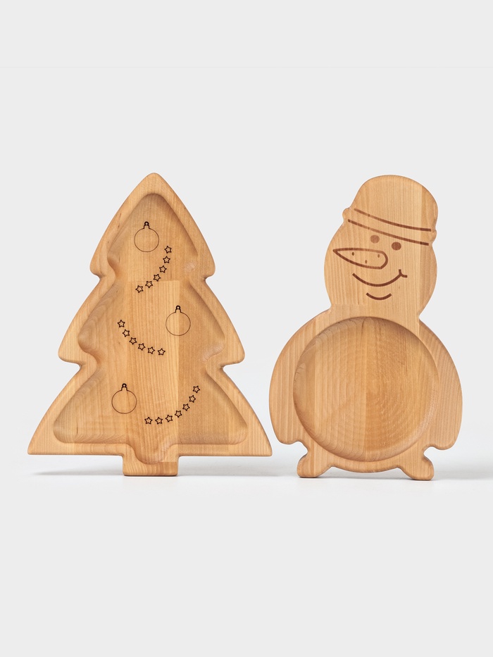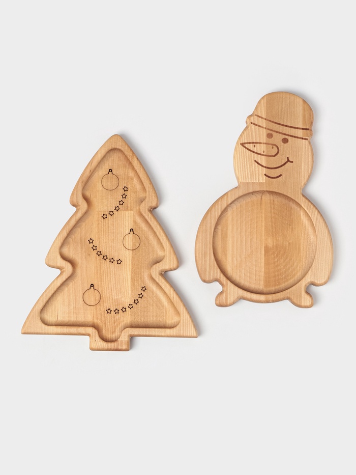 Подарочный набор посуды Adelica «С Новым годом», менажницы деревянные: снеговик 25×14 см, ёлка 25×20,5 см, магнит, в подарочной коробке — Характеристики