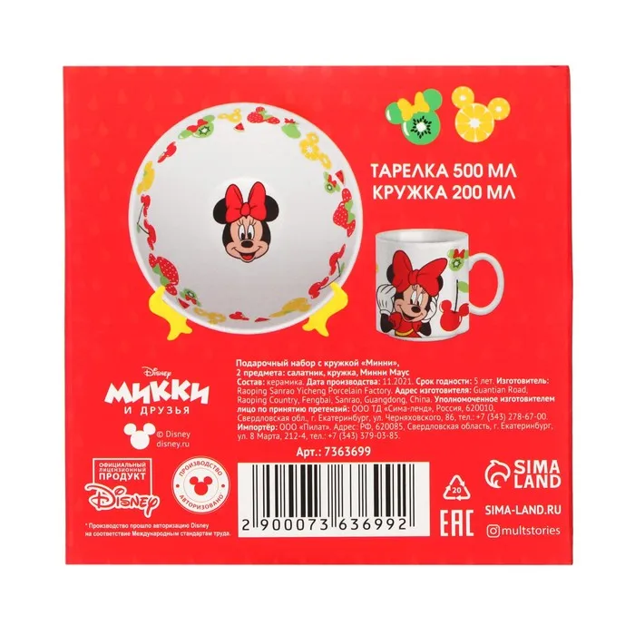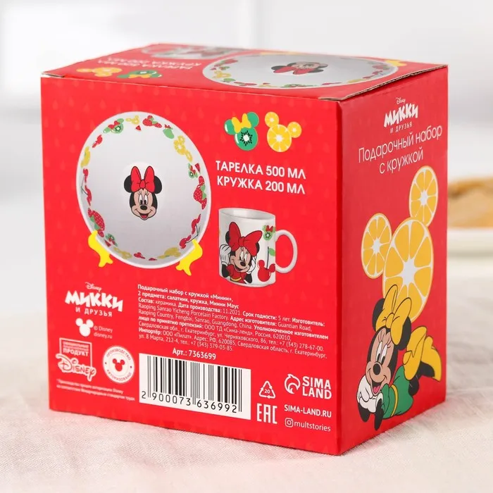 Подарочный набор посуды керамической: 2 предмета: тарелка, кружка, Минни Маус — Характеристики