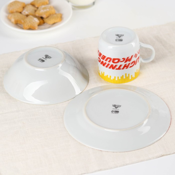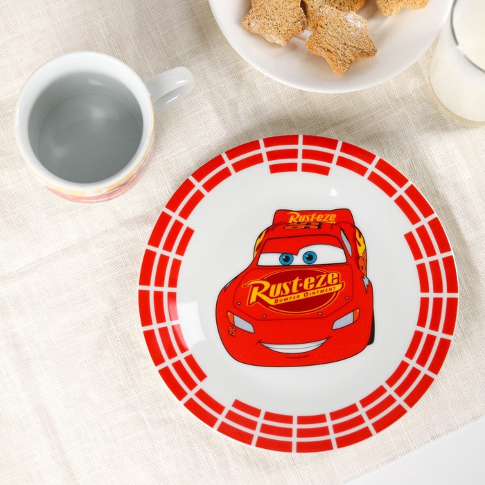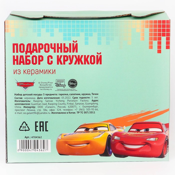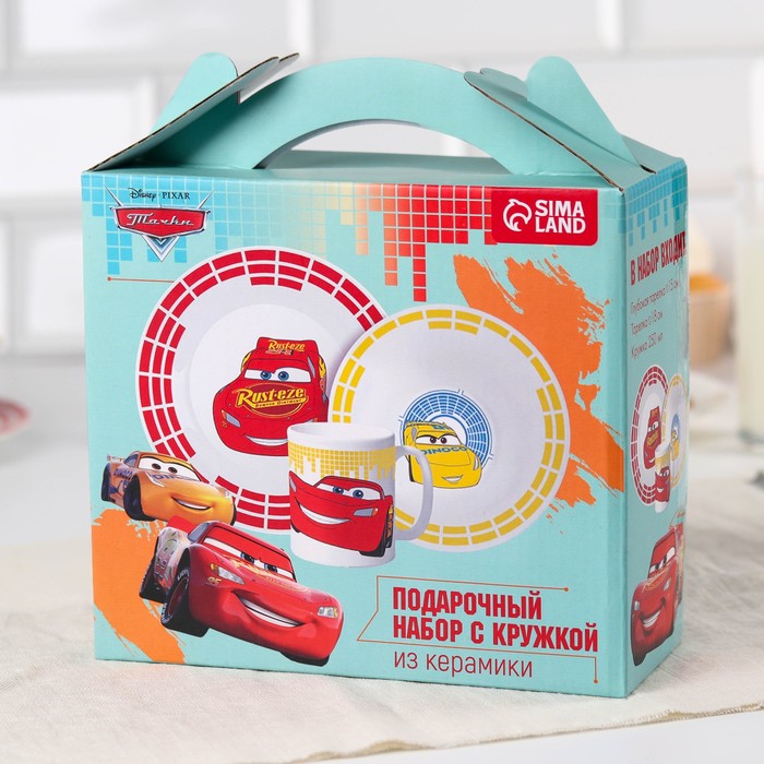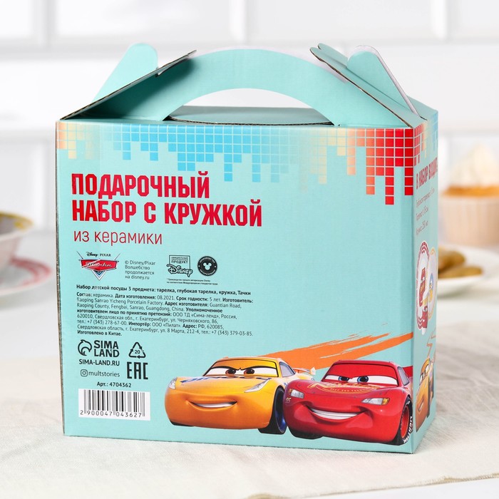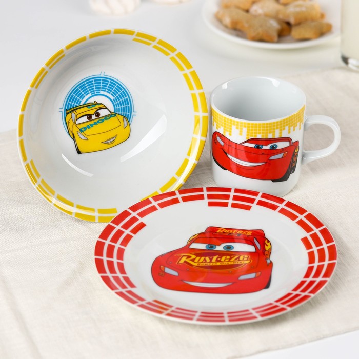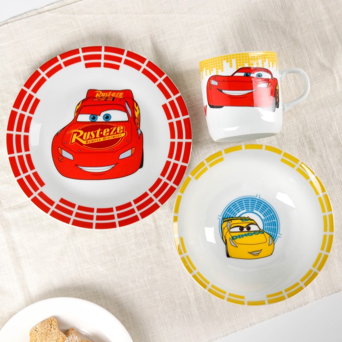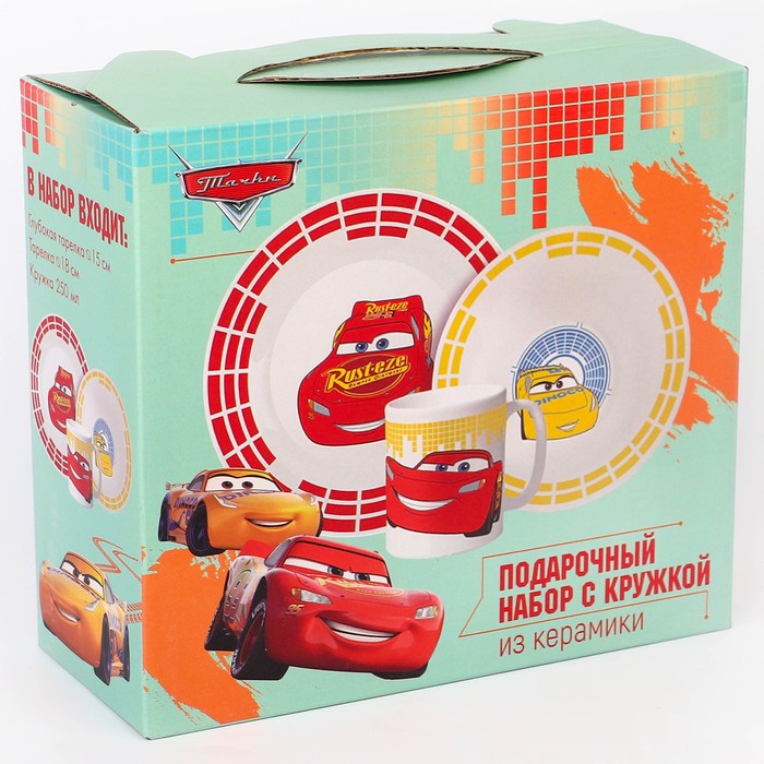 Подарочный набор посуды керамической, 3 предмета: тарелка Ø 16,5 см, миска Ø 14 см, кружка 200 мл, Тачки — Характеристики