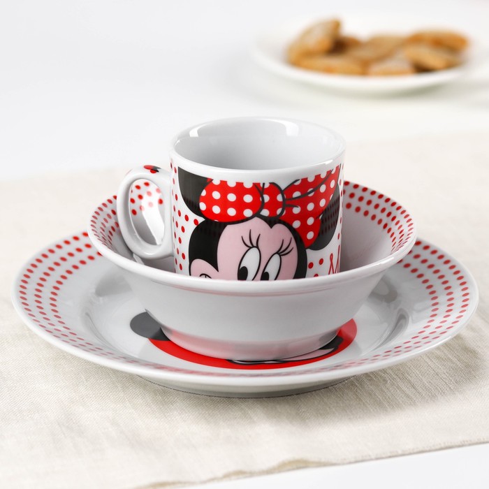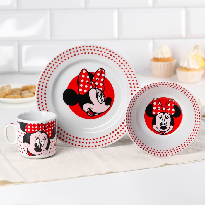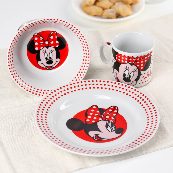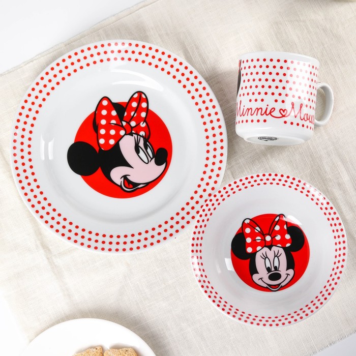 Подарочный набор посуды керамической: «Минни», 3 предмета: глубокая тарелка, плоская тарелка, кружка 250 мл, Минни Маус — Характеристики