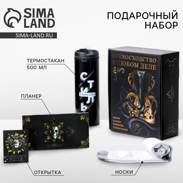 Подарочный набор «Превосходство»: термостакан, планер, открытка, носки МИКС — Характеристики
