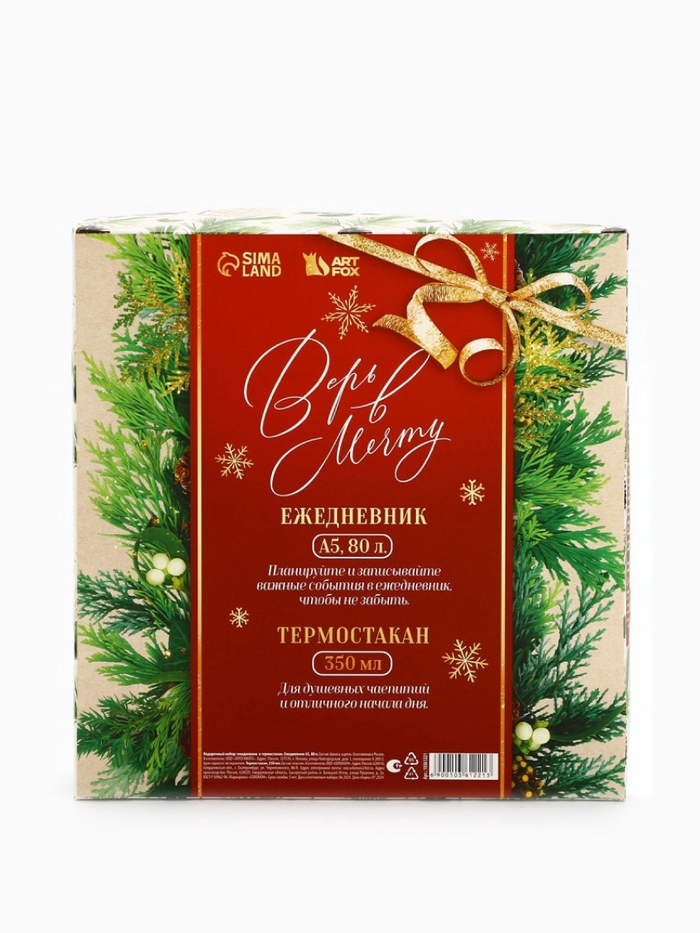 Подарочный набор «Пусть мечты сбудутся!», ежедневник А5, 80 листов, термостакан 350 мл — Характеристики