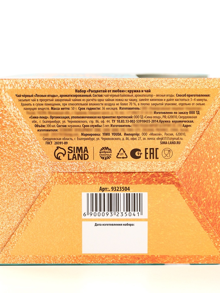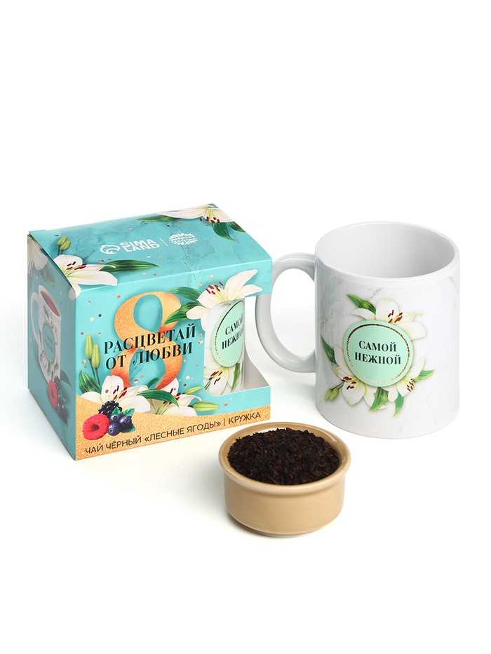 Подарочный набор «Расцветай от любви. 8 марта», чай чёрный с лесными ягодами 50 г, кружка — Характеристики