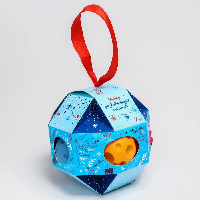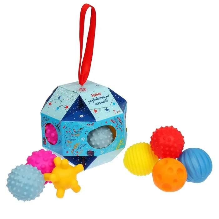 Подарочный набор развивающих мячиков «Ёлочный шар», с пищалкой, 7 шт., Крошка Я