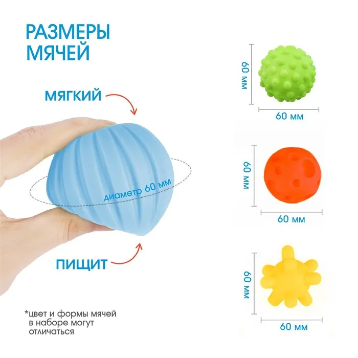 Мячики выполнены из приятного на ощупь материала, и малышам очень удобно держать их в руках.