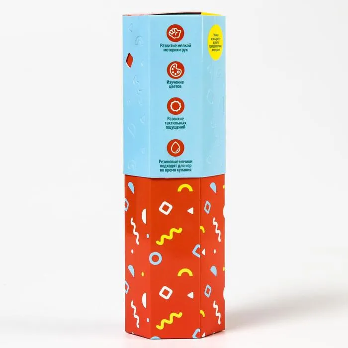 Мячики с рельефной массажной поверхностью способствуют развитию мелкой моторики и тактильных ощущений. Давление на фактурную поверхность мячиков стимулирует и благоприятно воздействует на нервные окончания, ответственные за большинство процессов в организме. Шарики имеют яркие цвета, которые способствуют развитию зрения, а пищалка внутри развивает слуховое восприятие.