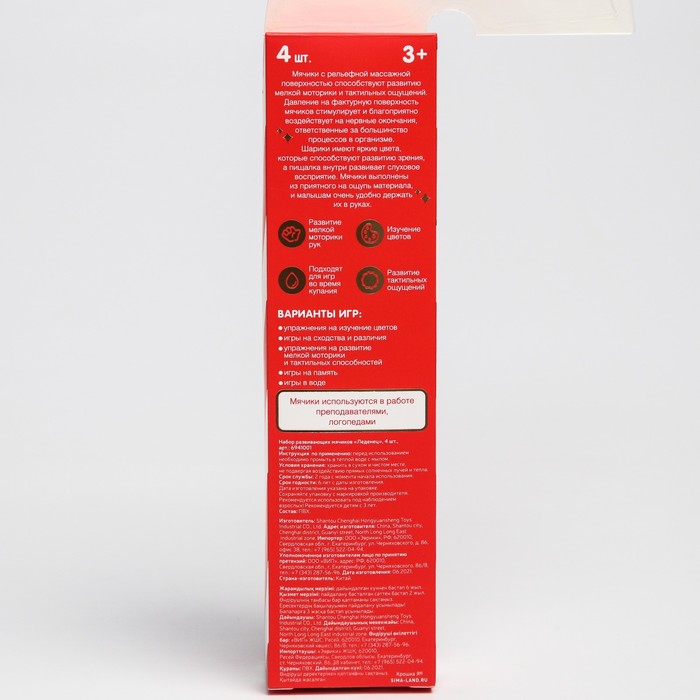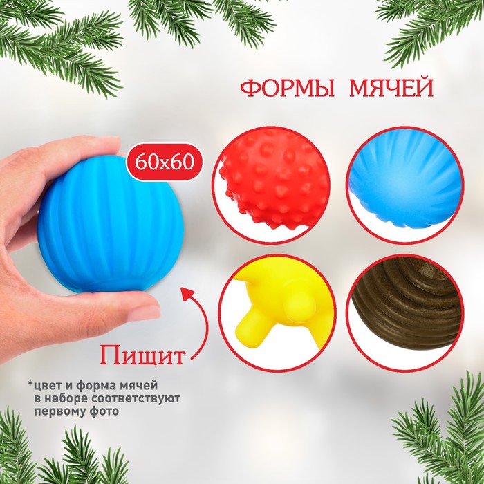 Подарочный набор развивающих тактильных мячиков «Леденец» 4 шт., Крошка Я — Характеристики