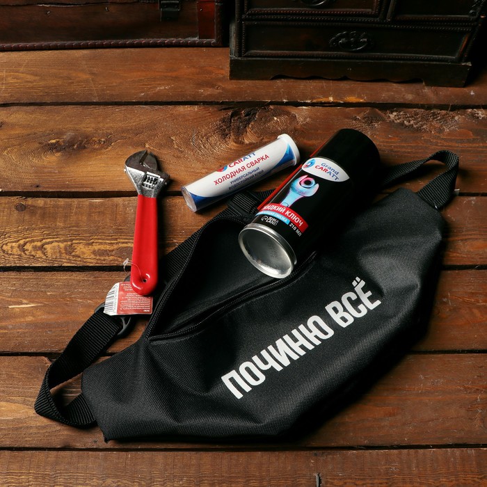 Подарочный набор ремонтный "экстренный набор мужика": поясная сумка, жидкий ключ 210мл, разводной ключ, изолента — Характеристики
