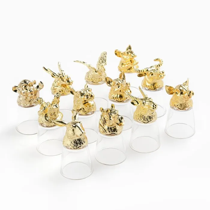 Набор стопок-перевертышей высокого качества с головами животных — оригинальный подарок для охотника, а также будет незаменим на большом дружеском застолье или на охотничьем привале.
