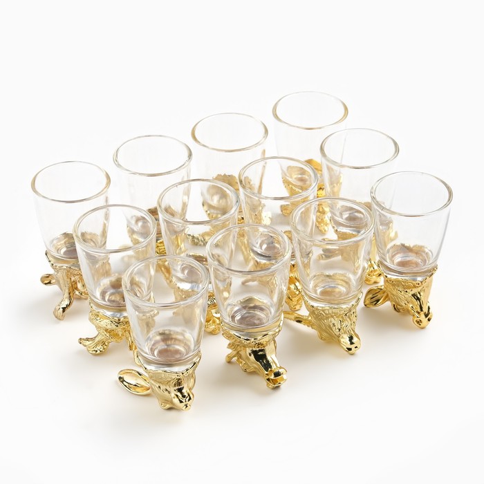 Набор стопок-перевертышей высокого качества с головами животных — оригинальный подарок для охотника, а также будет незаменим на большом дружеском застолье или на охотничьем привале.