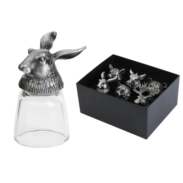 Набор стопок-перевертышей высокого качества с головами животных — оригинальный подарок для охотника, а также будет незаменим на большом дружеском застолье или на охотничьем привале.