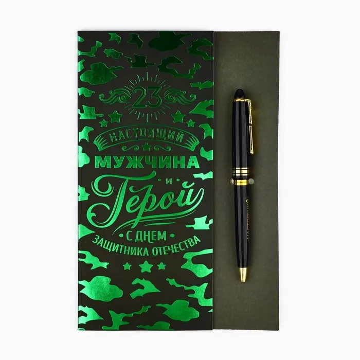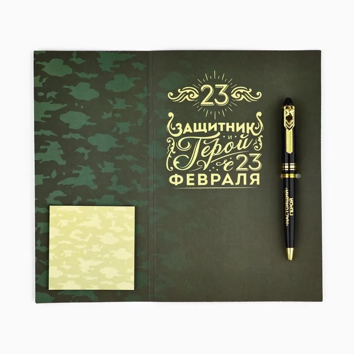 Подарочный набор, ручка пластик с фигурным клипом и стикеры «23 февраля» — Характеристики