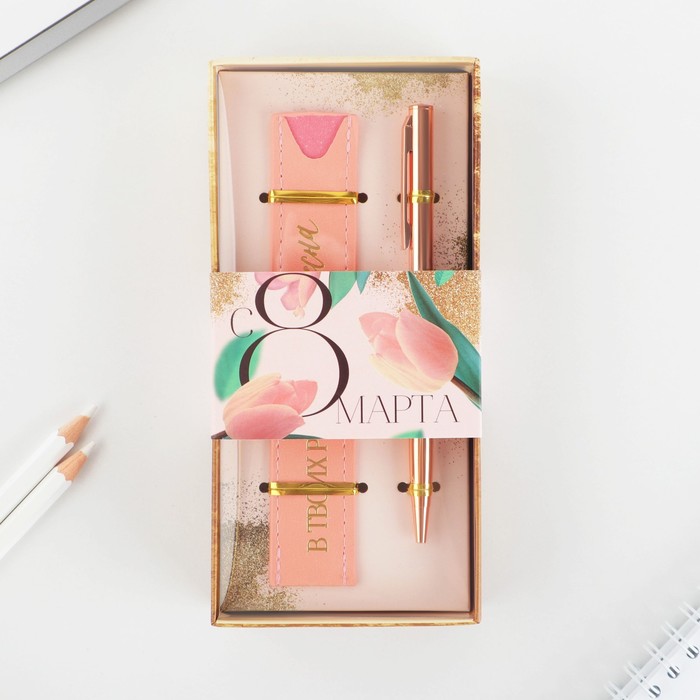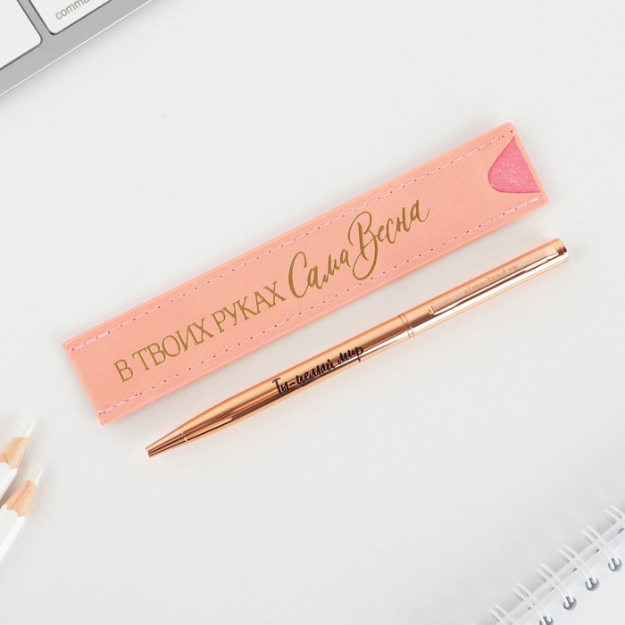 Подарочный набор ручка розовое золото и кожзам чехол «С 8 марта» — Характеристики