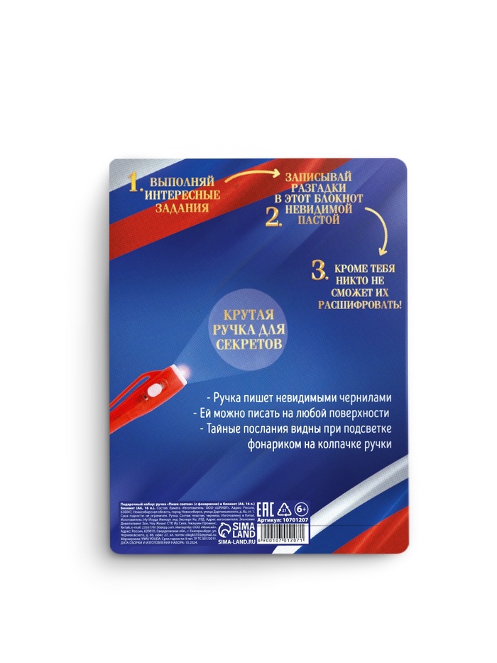 Подарочный набор: ручка с невидимыми чернилами и блокнот А6, 16 л. «Лучшему защитнику 23 февраля» — Характеристики
