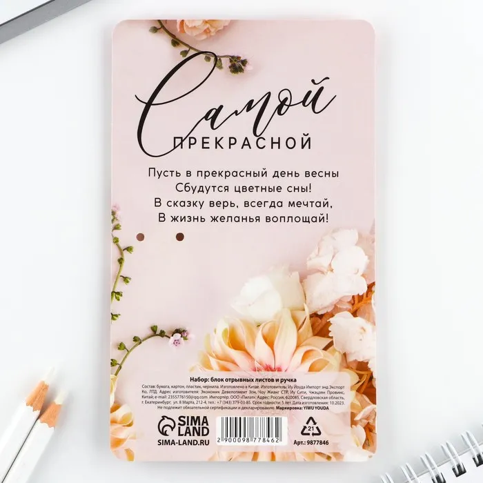 Подарочный набор, ручка шариковая и блок бумаги 30 л «Поздравляю с праздником!» — Характеристики