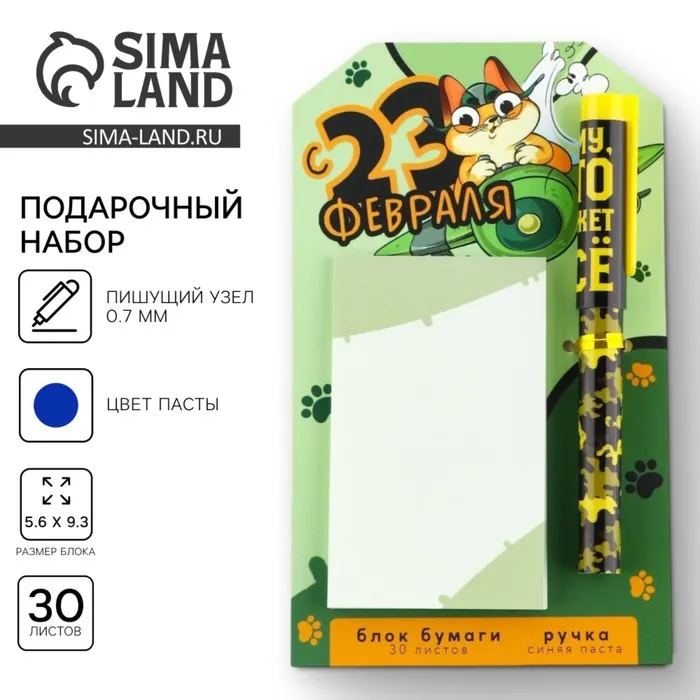 Подарочный набор, ручка шариковая и блок бумаги 30 л «С 23 февраля!» — Характеристики