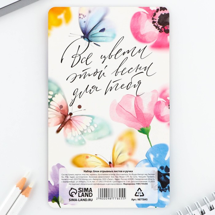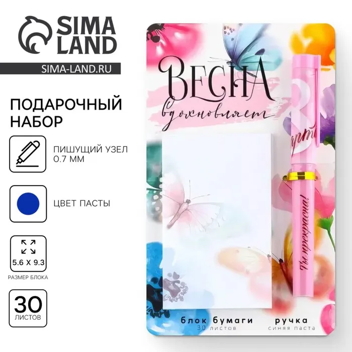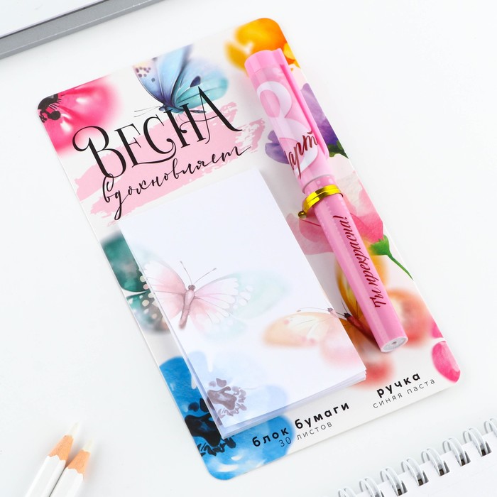Подарочный набор, ручка шариковая и блок бумаги 30 л «Весна вдохновляет. 8 марта» — Характеристики