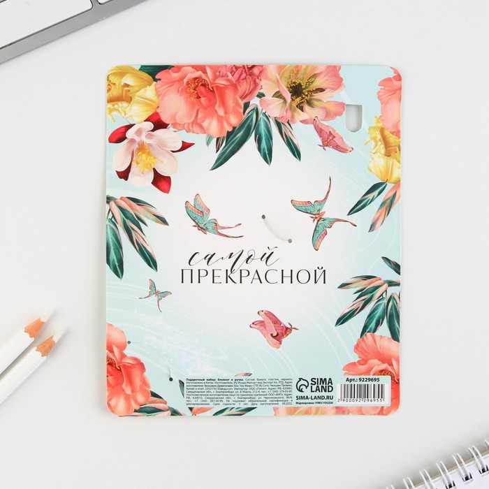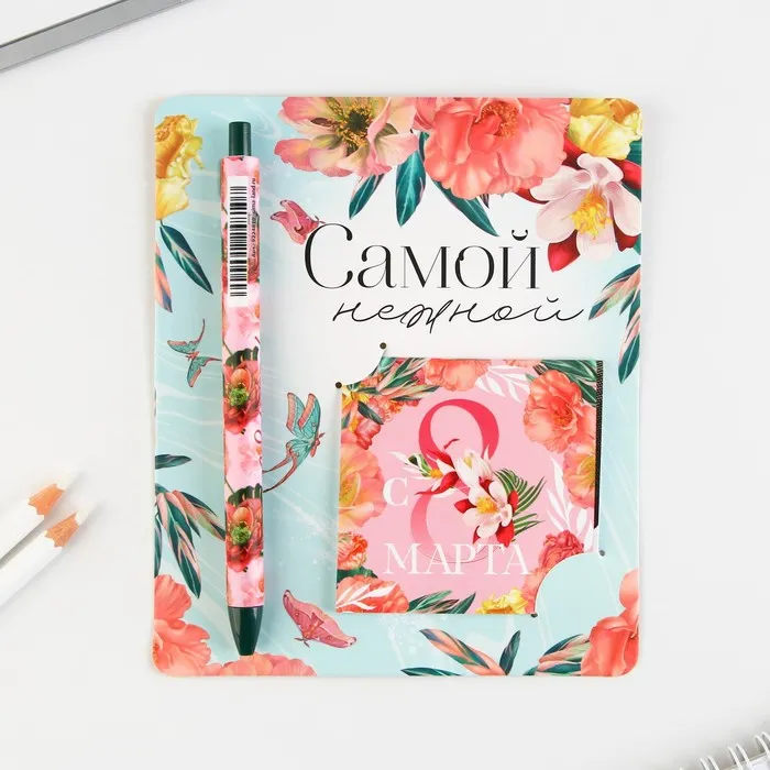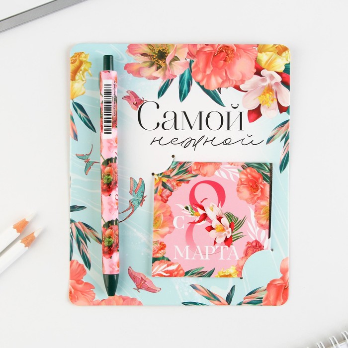 Подарочный набор: ручка шариковая и блокнот 16 л «Самой нежнойю 8 марта» . — Характеристики