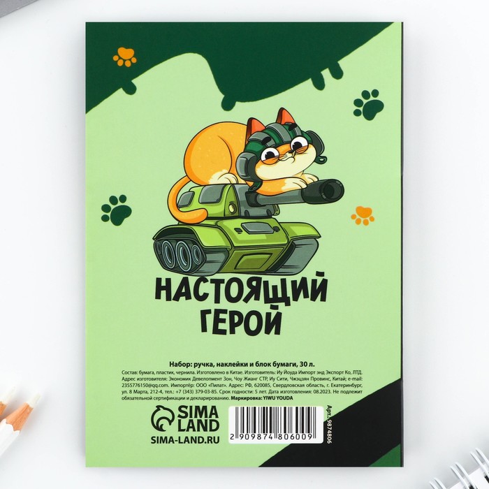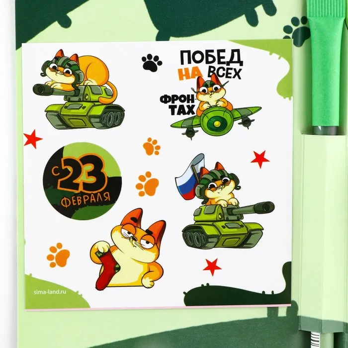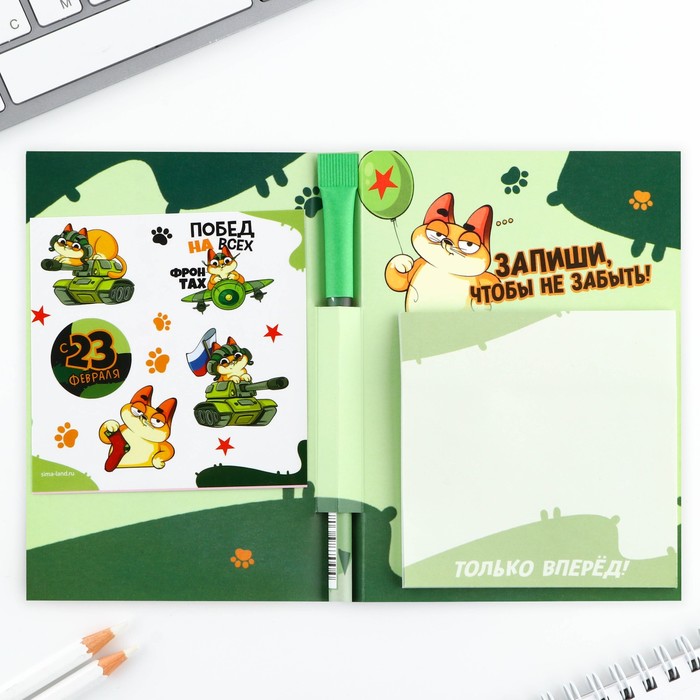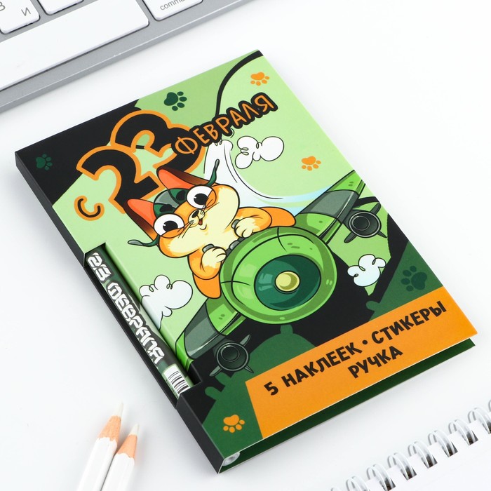 Подарочный набор «С 23 февраля», блок бумаги 30 л, ручка синяя паста 1.0 мм и 5 шт наклеек — Характеристики