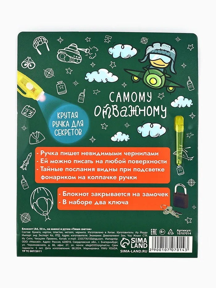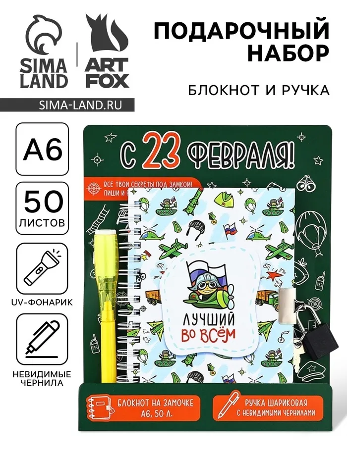Подарочный набор «С 23 февраля!», блокнот А6, 50 л и ручка шариковая с невидимыми чернилами — Характеристики