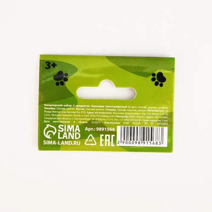 Составляющие набора: Ластик