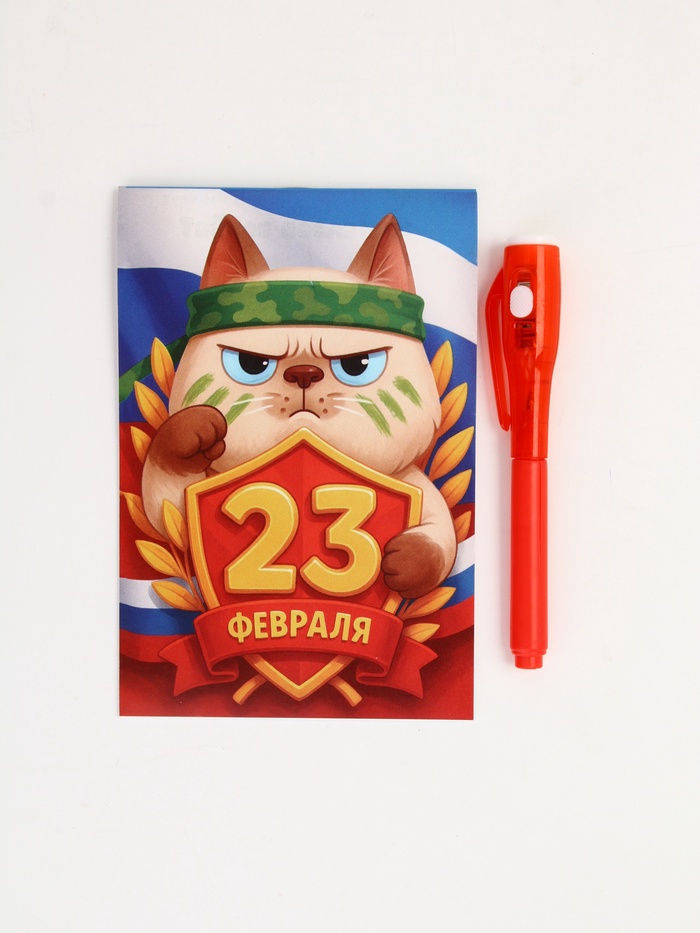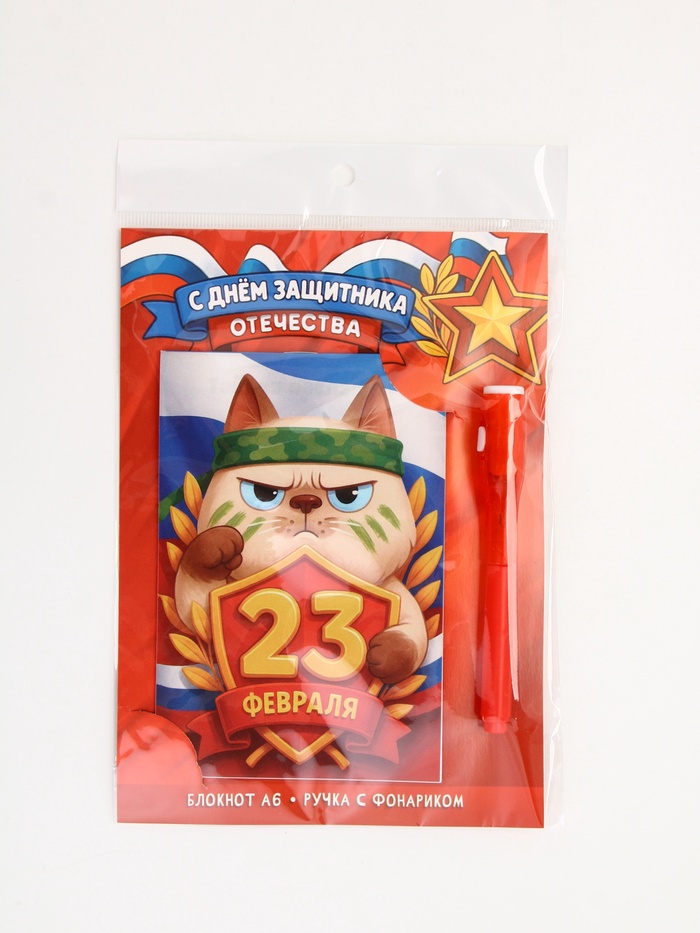 Подарочный набор «С 23 февраля», ручка с фонариком и невидимыми чернилами, блокнот А6, 16 л