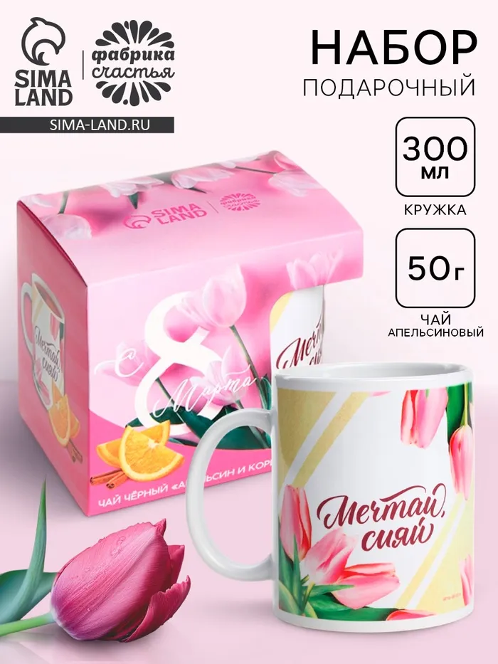 Подарочный набор «С 8 Марта»: чай апельсин с шоколадом, 50 г, кружка 300 мл — Характеристики