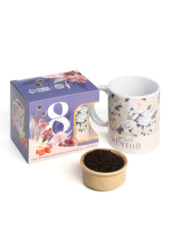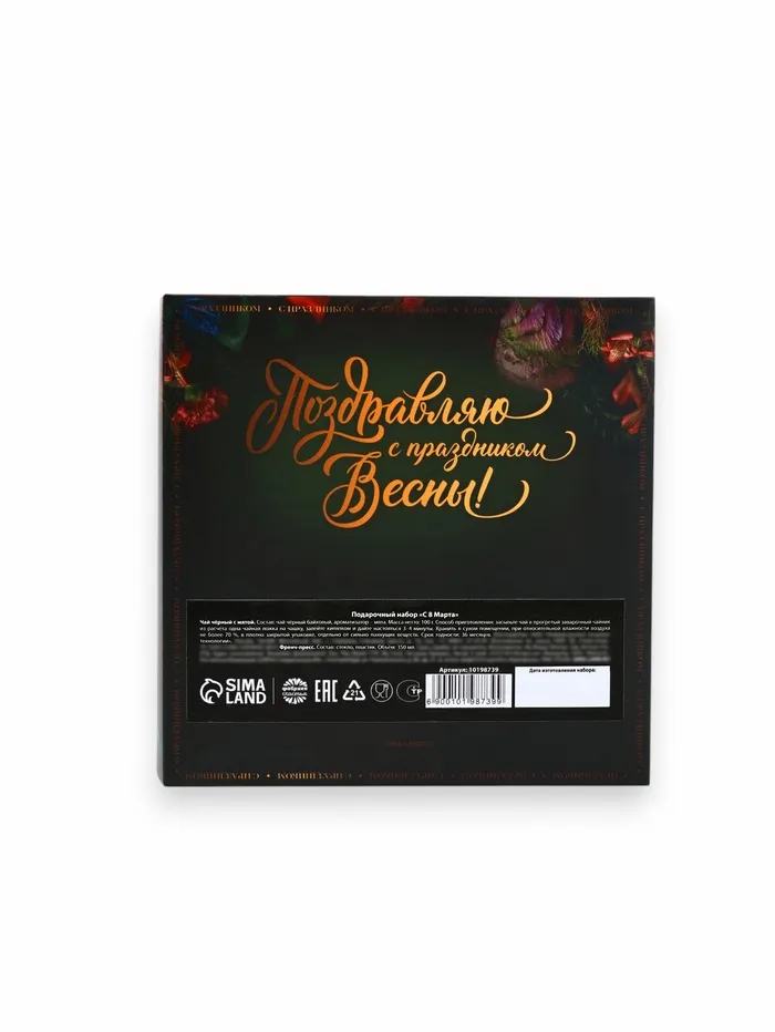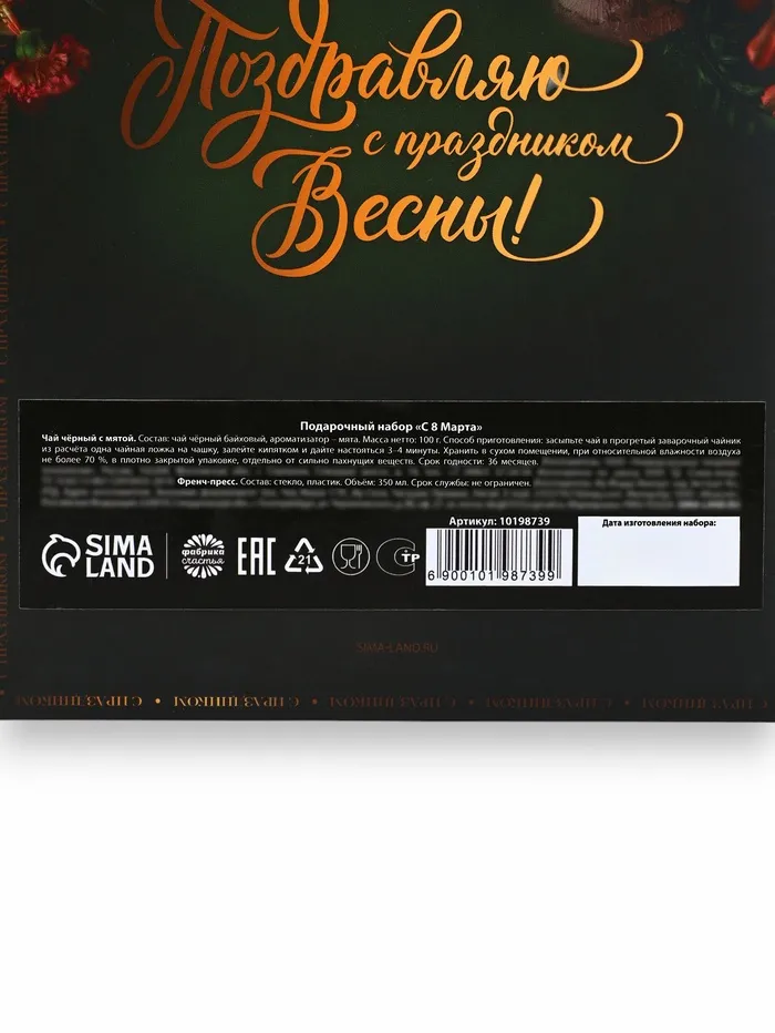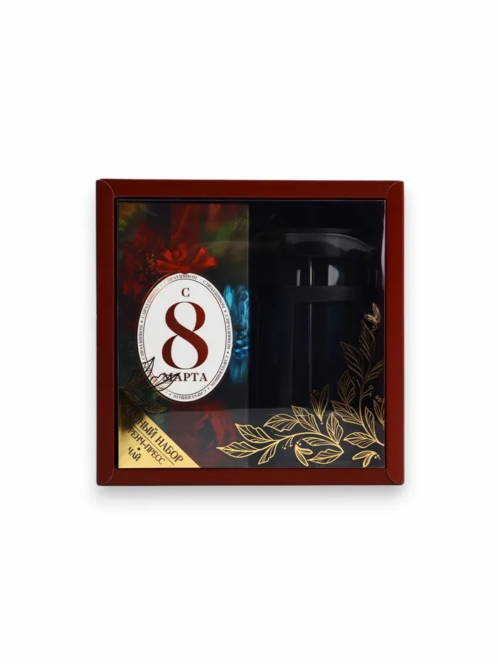Подарочный набор «С 8 марта»: чай чёрный со вкусом мяты 100 г., френч-пресс — Характеристики