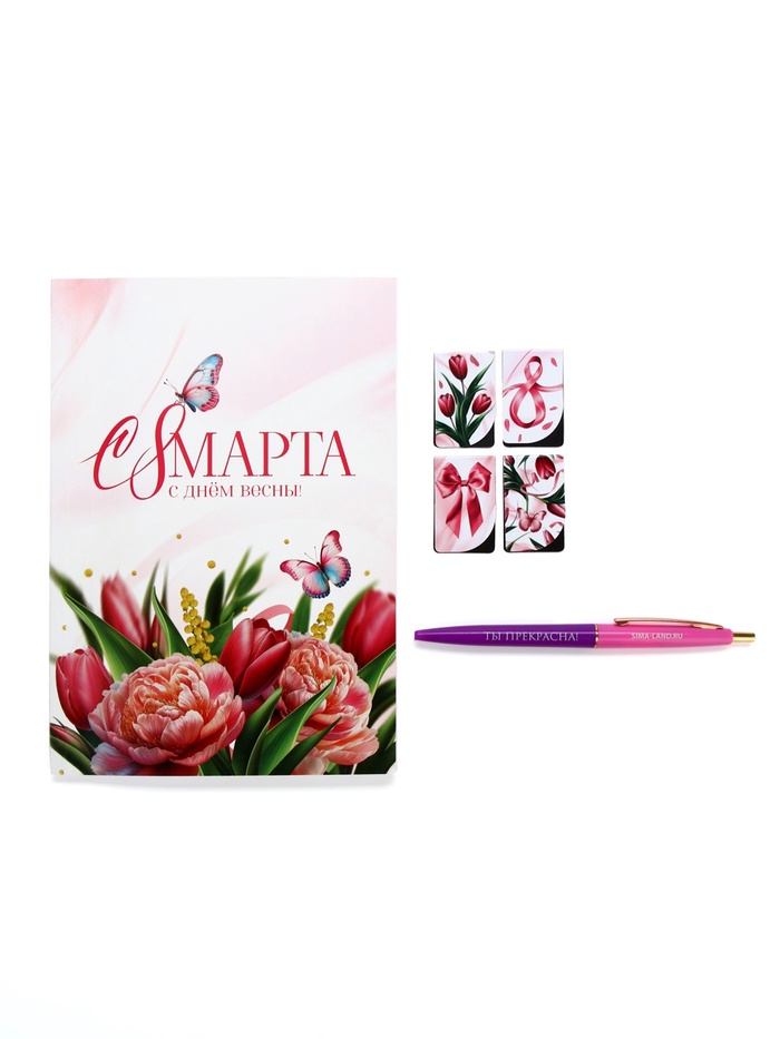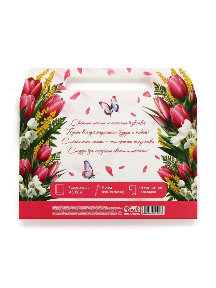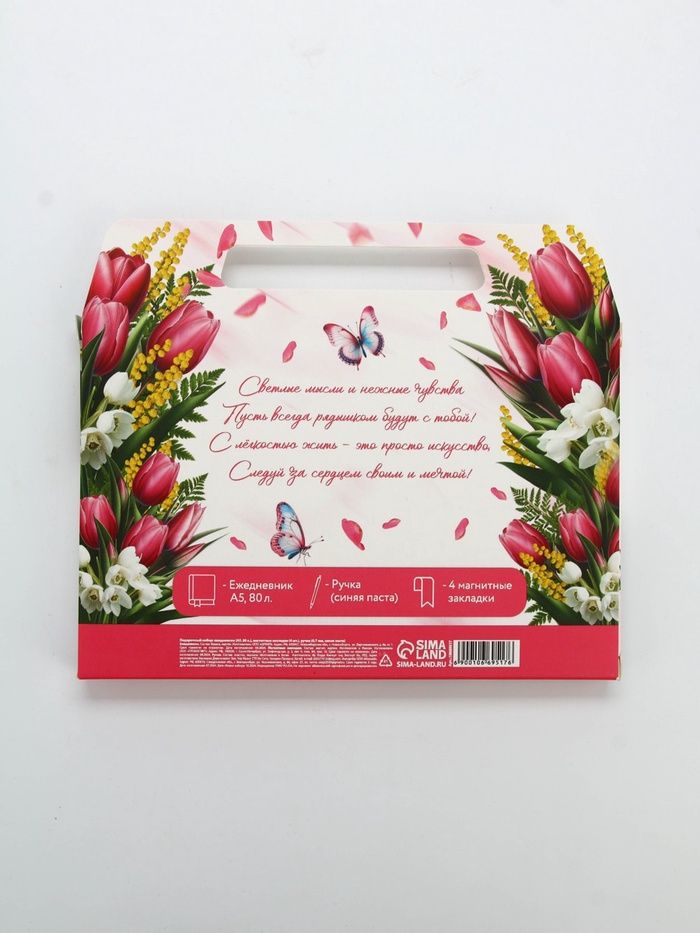 Подарочный набор «С 8 марта!», ежедневник А5, магнитные закладки и ручка — Характеристики